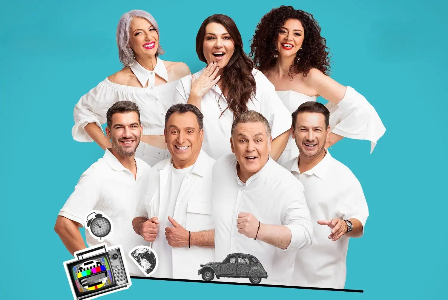 Ο θίασος της παράστασης «Ούτε Μπρος Ούτε Πίσω» των Μιχάλη Ρέππα και Θανάση Παπαθανασίου,